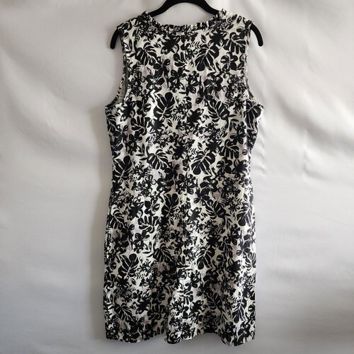 BRIGGS Linen Floral Tropical Knee Length Sleeveless Dress Pockets SZ Large
