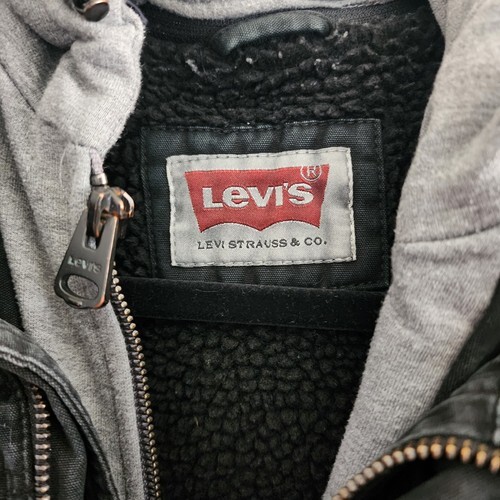 Women's Black And Gray Levi Hooded Field Jacket Size XL