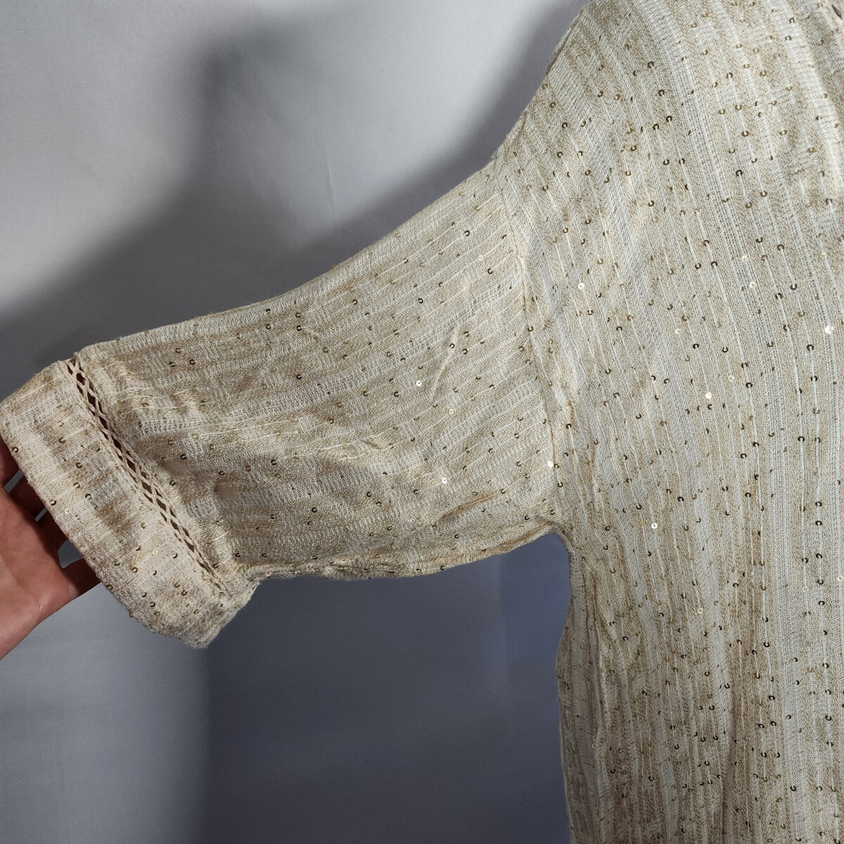 Soft Surroundings Glamour Topper SZ PL Cream Gold Sequin Lagenlook Coastal Beach