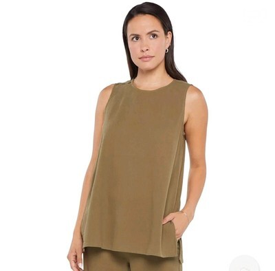NYDJ Womens Size M Gauze Sleeveless Tunic Moss Green Beach Lagenlook Minimalist NWT