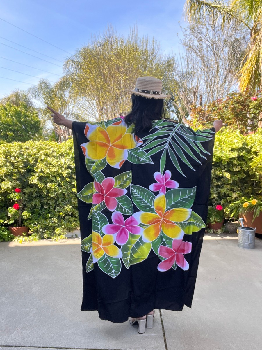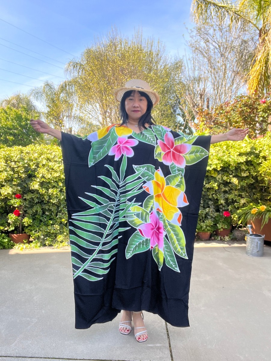 KD525 Floral Hand Painted Batik Women Plus Kaftan Kimono Maxi Dress up to 7X