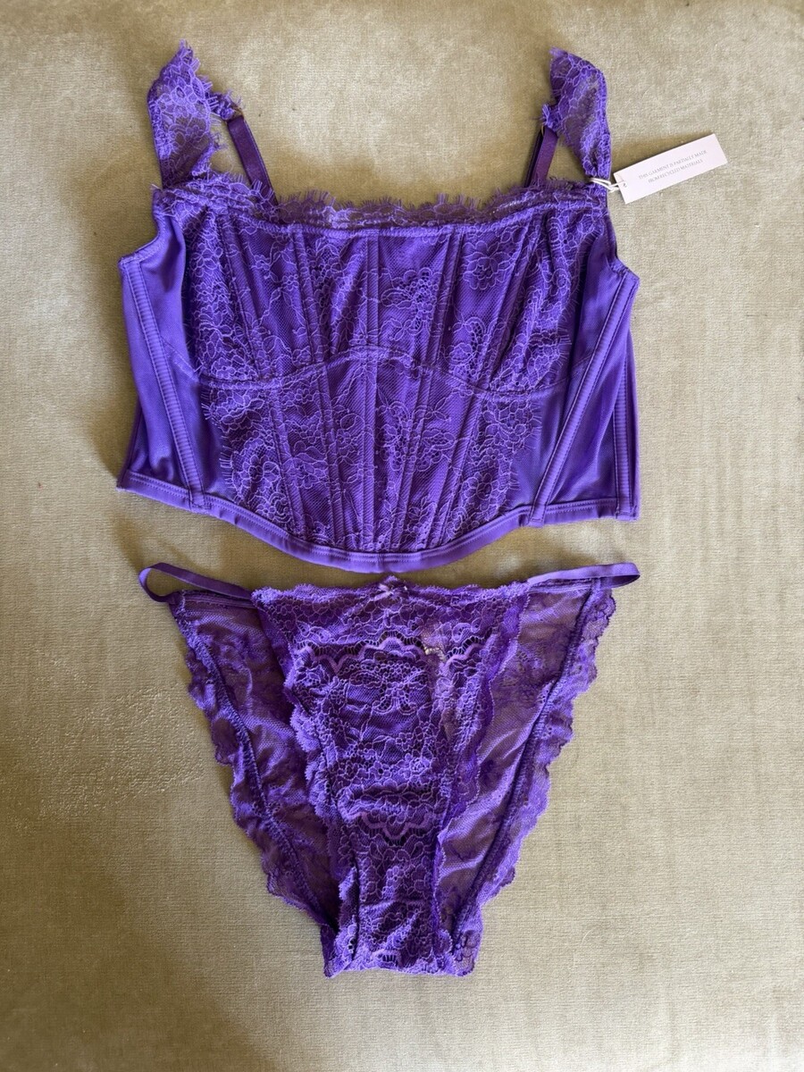 Victorias Secret DREAM ANGELS Unlined Bustier Corset Bra Thong Set Purple Cheeky