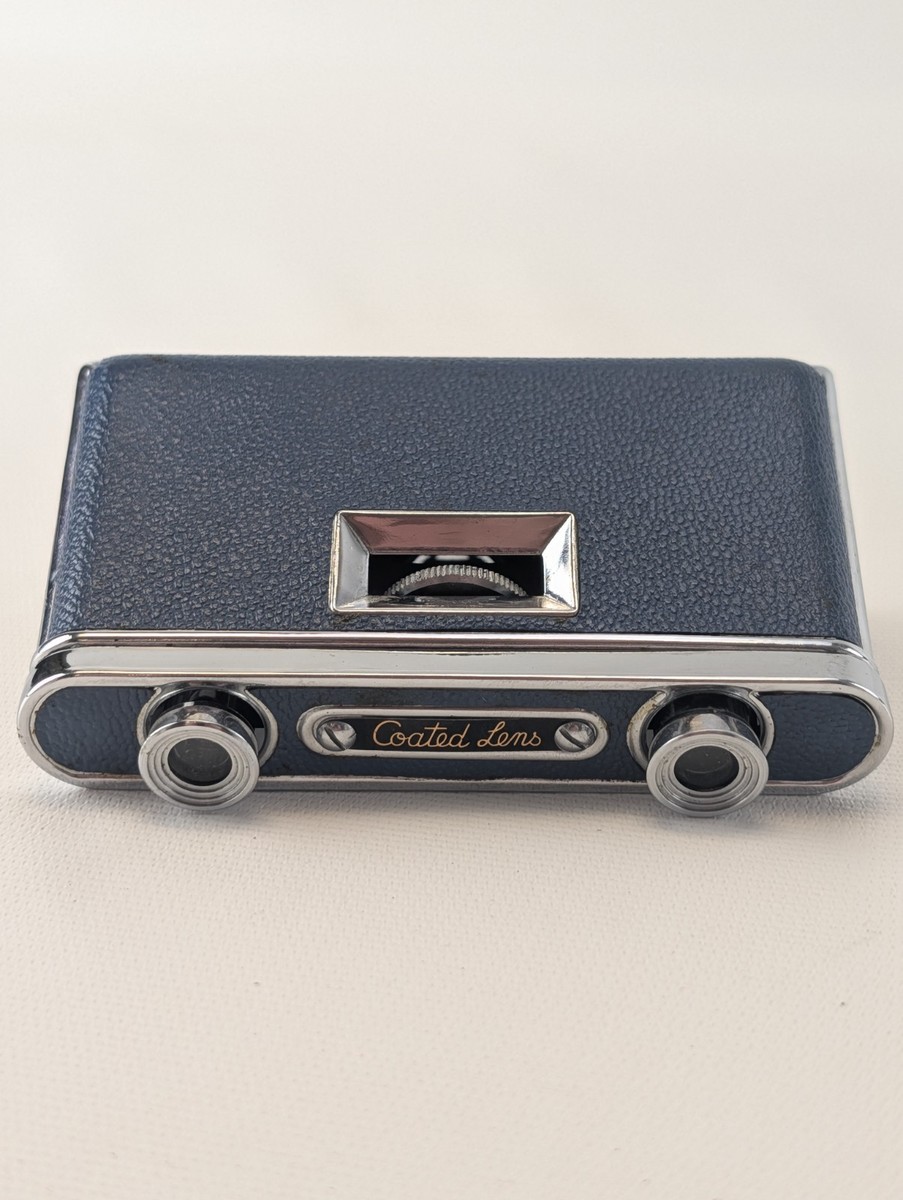 Vintage Folding Opera Glasses Blue Chrome Coated Lens Binoculars Japan MCM