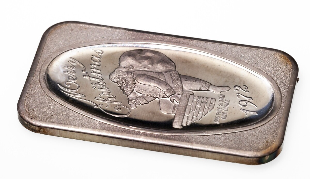 1972 Merry Natale By Madison Mint 1 Oz. Argento Artistico Barretta