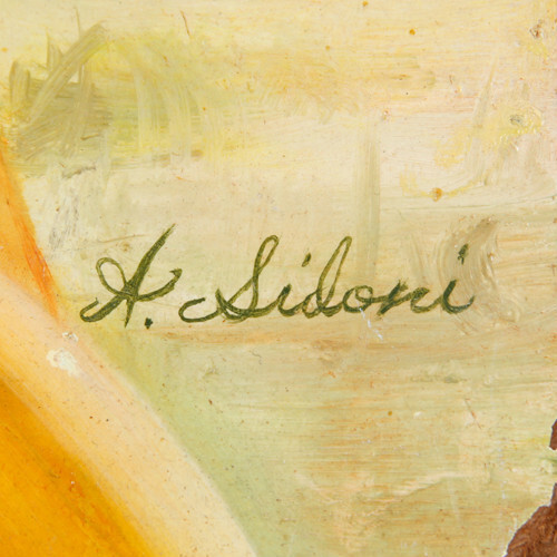 Nato a Buffalo, New York, Anthony Sidoni (1919-2012) era un artista autodidatta con un talento naturale straordinario. Ha iniziato disegnando ritratti da bambino e la sua abilita e stata presto riconosciuta dal famoso artista petrolifero italiano, Tony Sisti, che ha dato ad Anthony diverse lezioni durante la lezione di pittura della comunita locale. Alla fine degli anni '60, Anthony espose arte in una mostra d'arte insieme al famoso artista Julian Ritter e in seguito ricevette il suo primo spettacolo da solo nella Galleria di Jane Freeman. Fu dopo questo che Anthony ottenne un vasto riconoscimento internazionale. Ha vissuto e dipinto a West Hollywood, in California, ed e stato votato "Artist of the Year" nel 2000 e nel 2001. (Fonte:Qart.com) Sia che tu stia cercando di acquistare articol