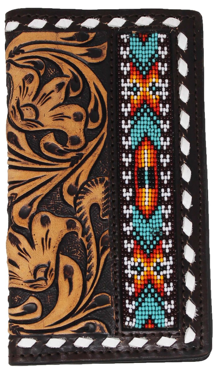 Men's Western Antique Floral Tooled Leather Beaded Inlay Rodeo Wallet 18RTW60R