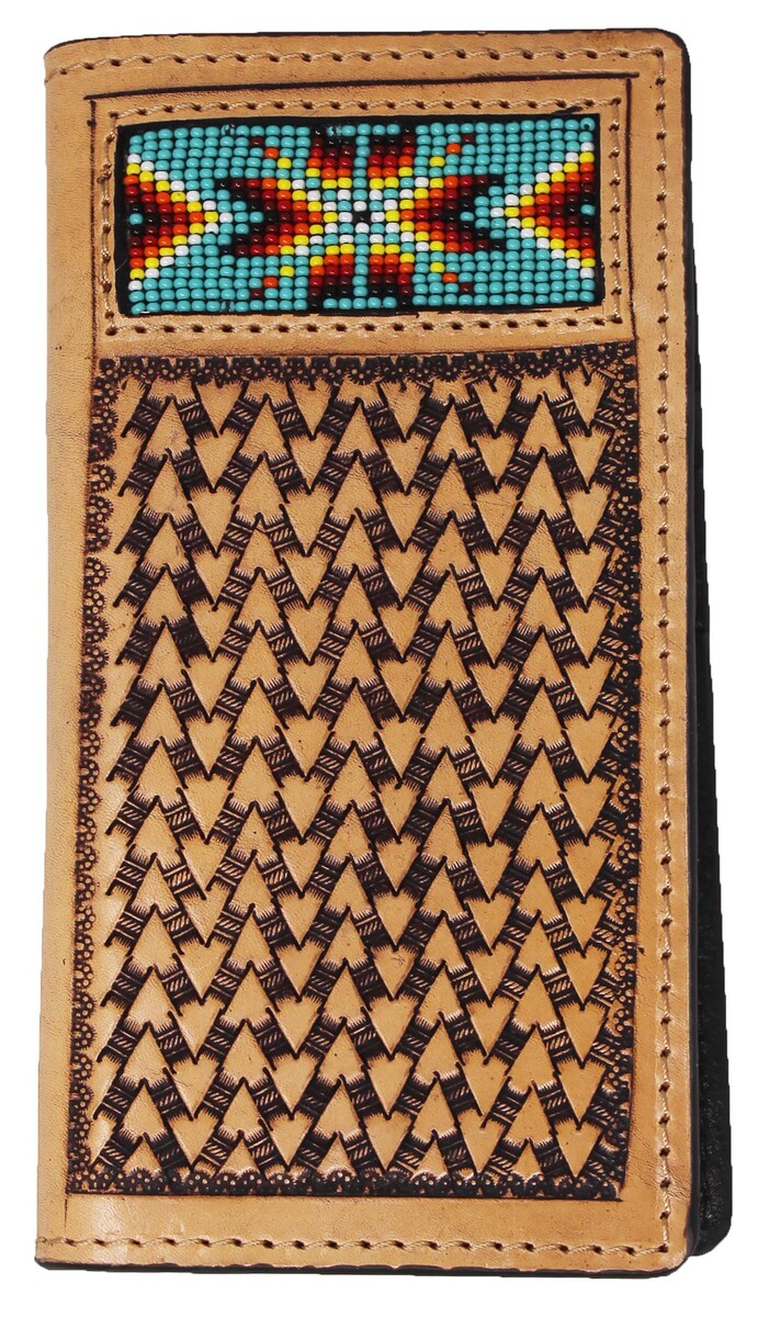 Men's Western Rodeo Wallet Arrow Basket Weave Tooled Leather Beaded 18RTW58R