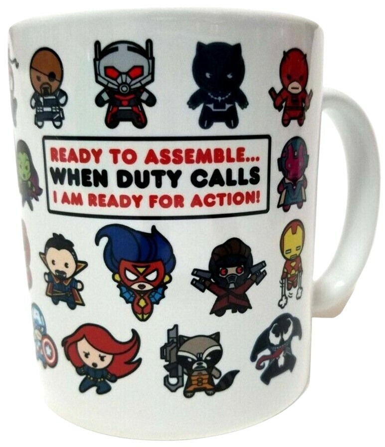 Assemble your morning caffeine with this vibrant, high-quality Marvel characters coffee mug! Featuring a massive roster of Earth's Mightiest Heroes (and a few villains) in an adorable "Chibi" art style, this mug is the ultimate collectible for any Marvel fan. From the core Avengers to the Defenders and the Guardians of the Galaxy, the gang's all here.