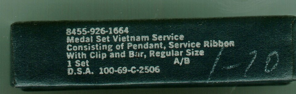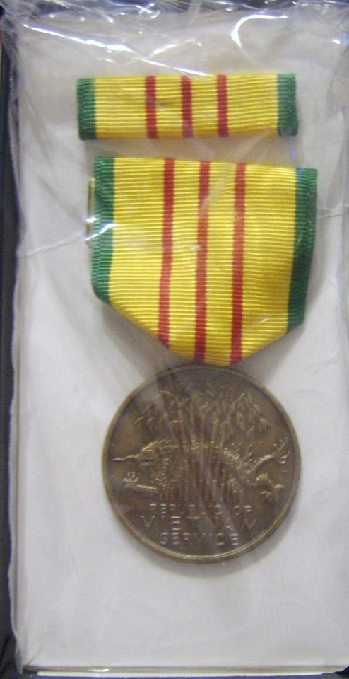 VIETNAM SERVICE MEDAL FULL SIZE & RIBBON BAR IN GI BOX DATED 1970 STYLE 2