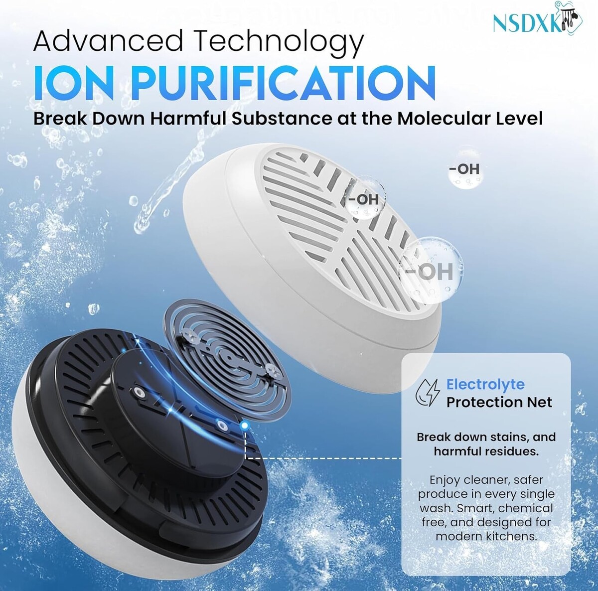 Effective Cleansing: Harnesses advanced OH ion purification technology to swiftly remove residues from fruits, vegetables, seafood, and meats without compromising taste or nutritional value.