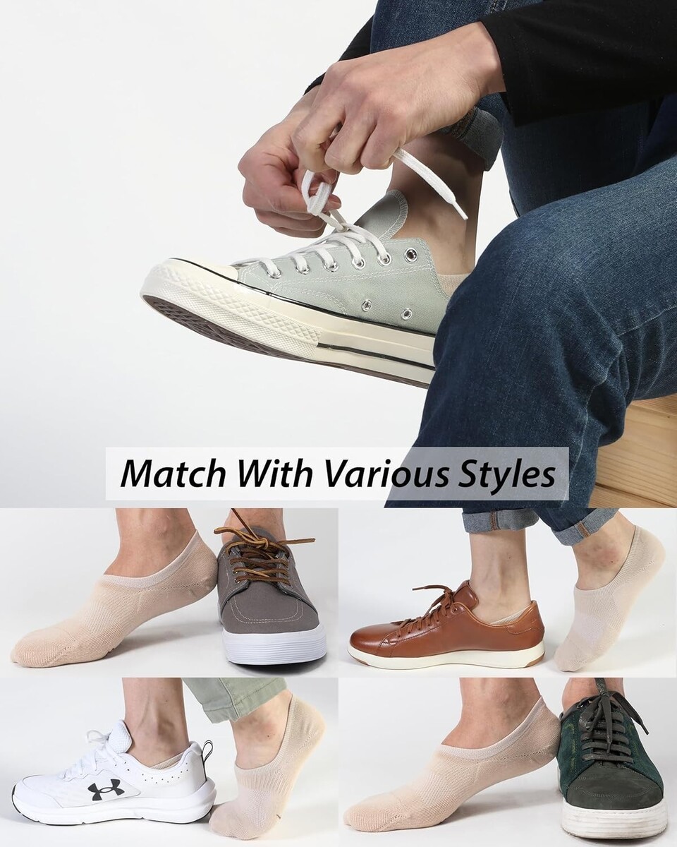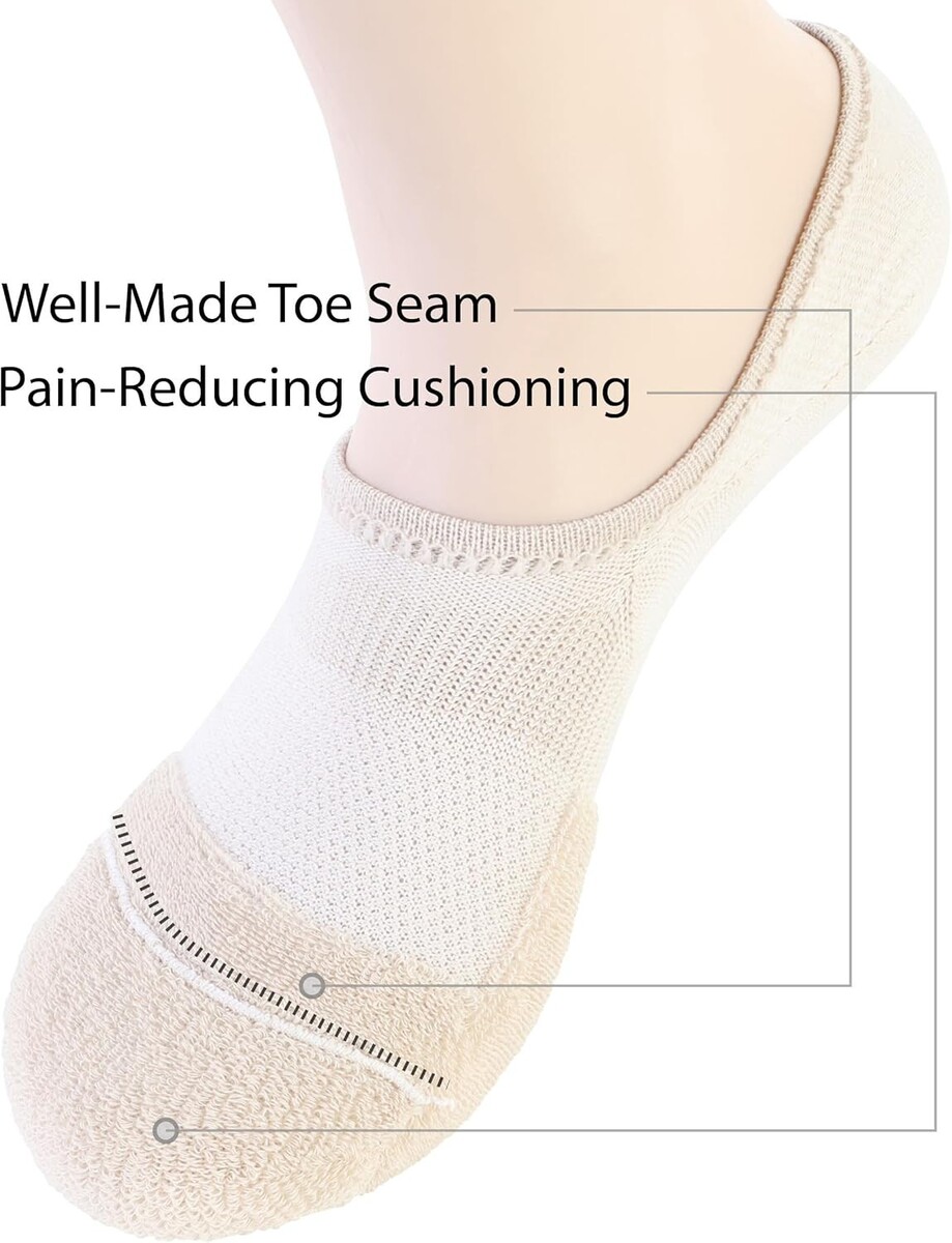 Health-Focused Unisex No Show Socks with Cushioned Support - 4 Pack in Beige
