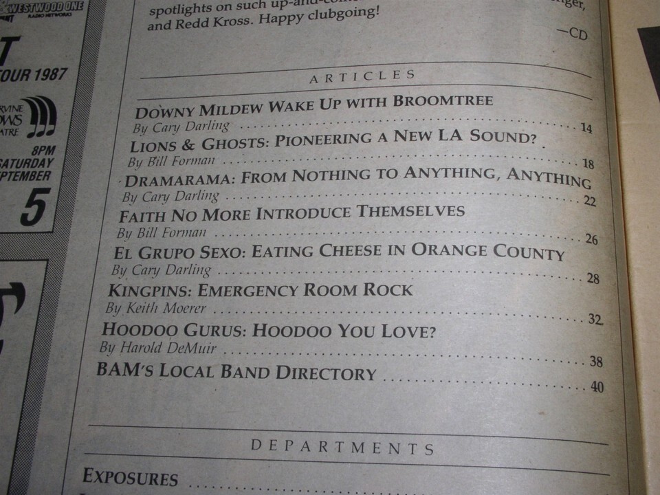 Lions & Ghosts BAM Magazine Vintage 1987 Downy Mildew Dramarama Faith No More*