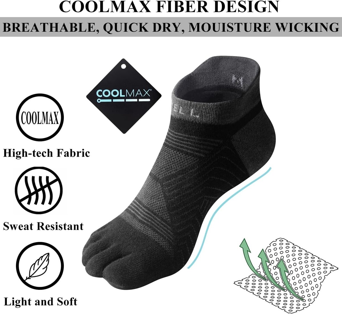 Unisex COOLMAX Athletic Toe Socks - Comfort and Performance, 3 Pairs