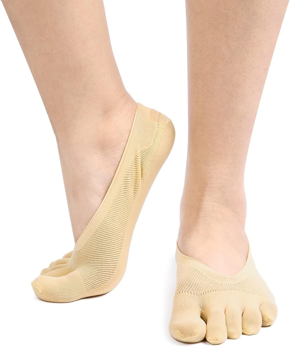 4 Pairs Women's No Show Toe Socks - Comfortable Non-Slip Five Finger Design