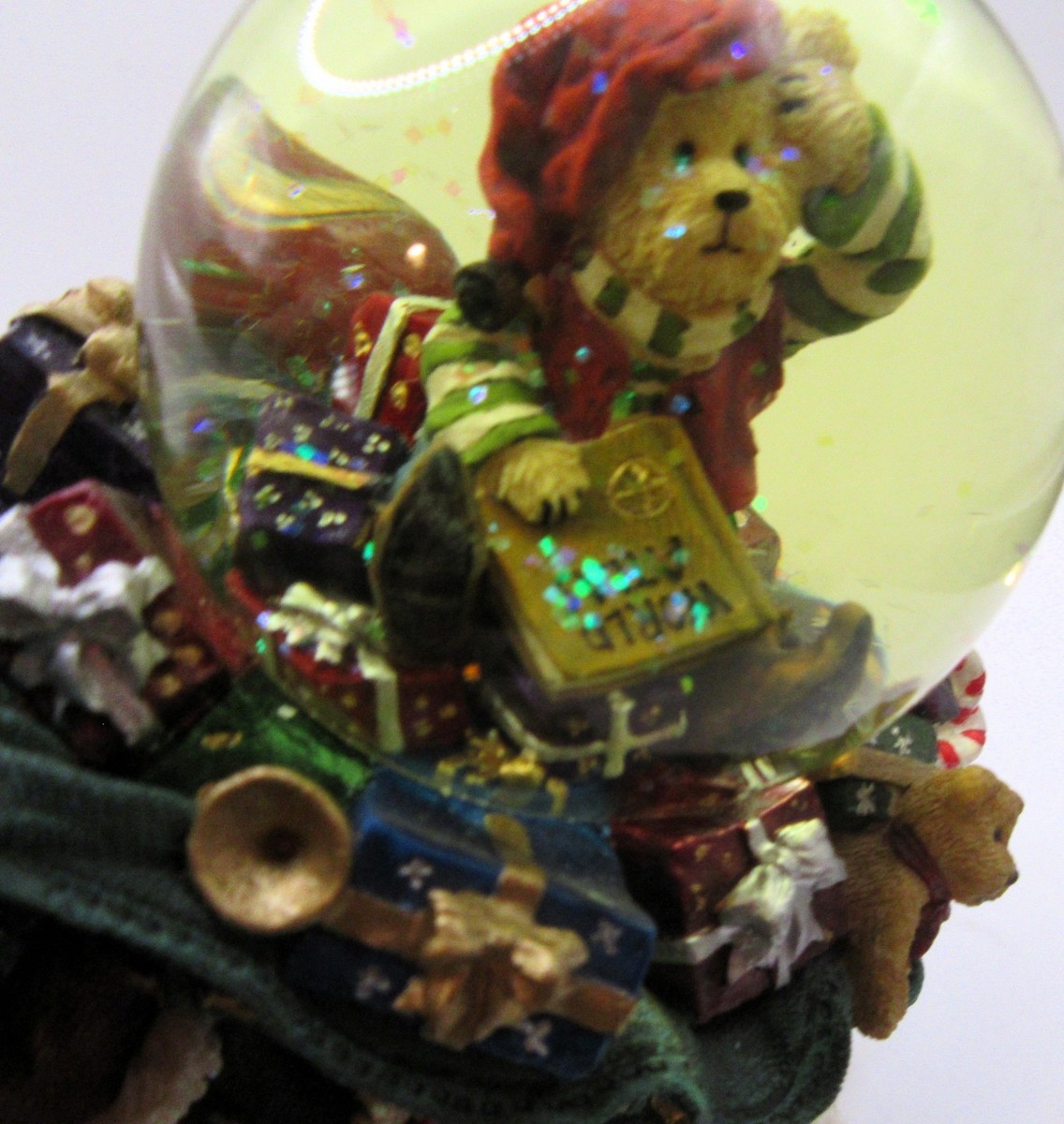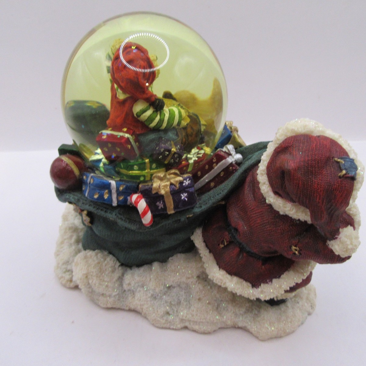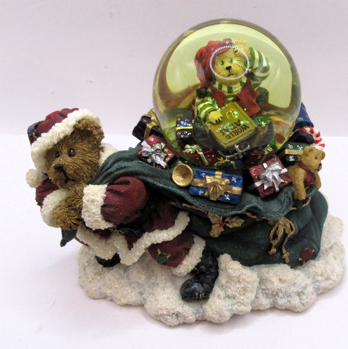 Add a touch of nostalgic holiday charm to your collection with this retired Boyds Bears Friends musical water globe. Titled "St. Nickleberry with Atlas," this piece features a classic bear Santa standing beside a detailed globe, perfect for any travel or holiday-themed decor. Item comes with the original box but no original packing or paperwork. I have many more of these figurines so please contact me if you are interested in making a bulk purchase.