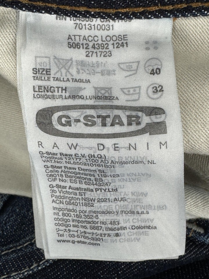 G-Star RAW Attacc Loose Jeans Mens 40 Blue Denim Button Fly Pockets GS RAW 01