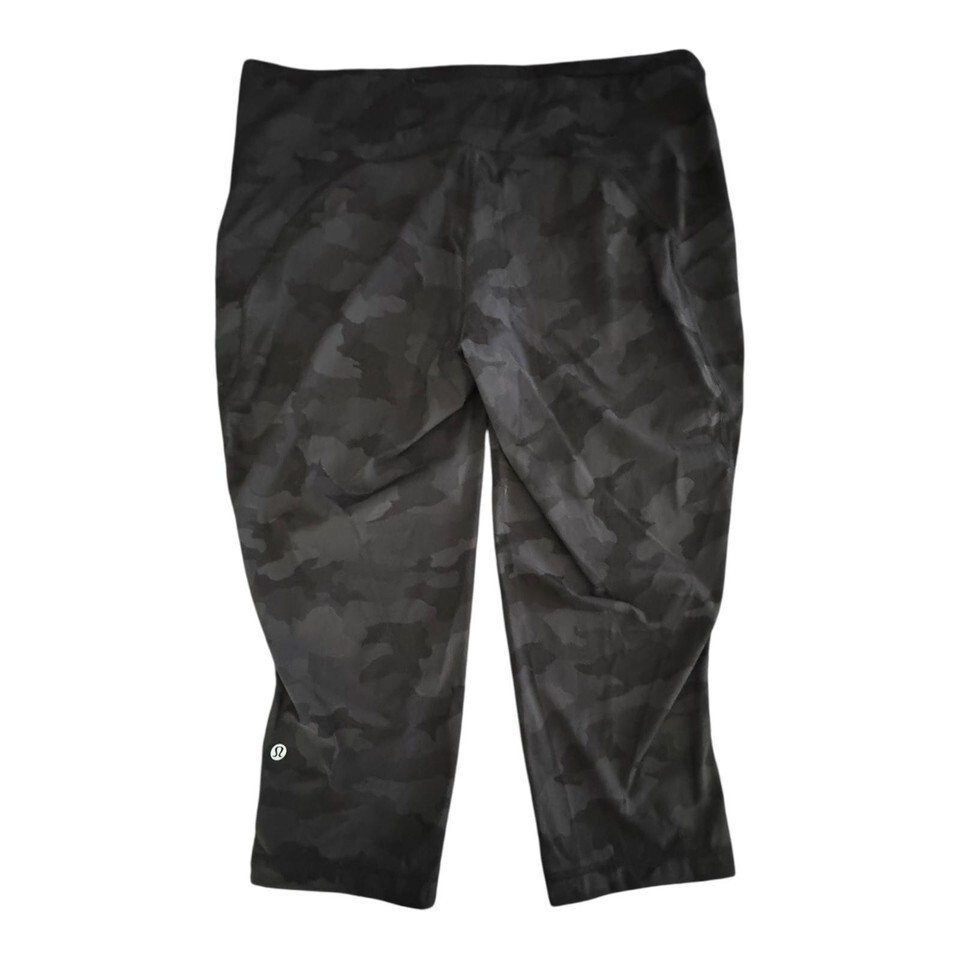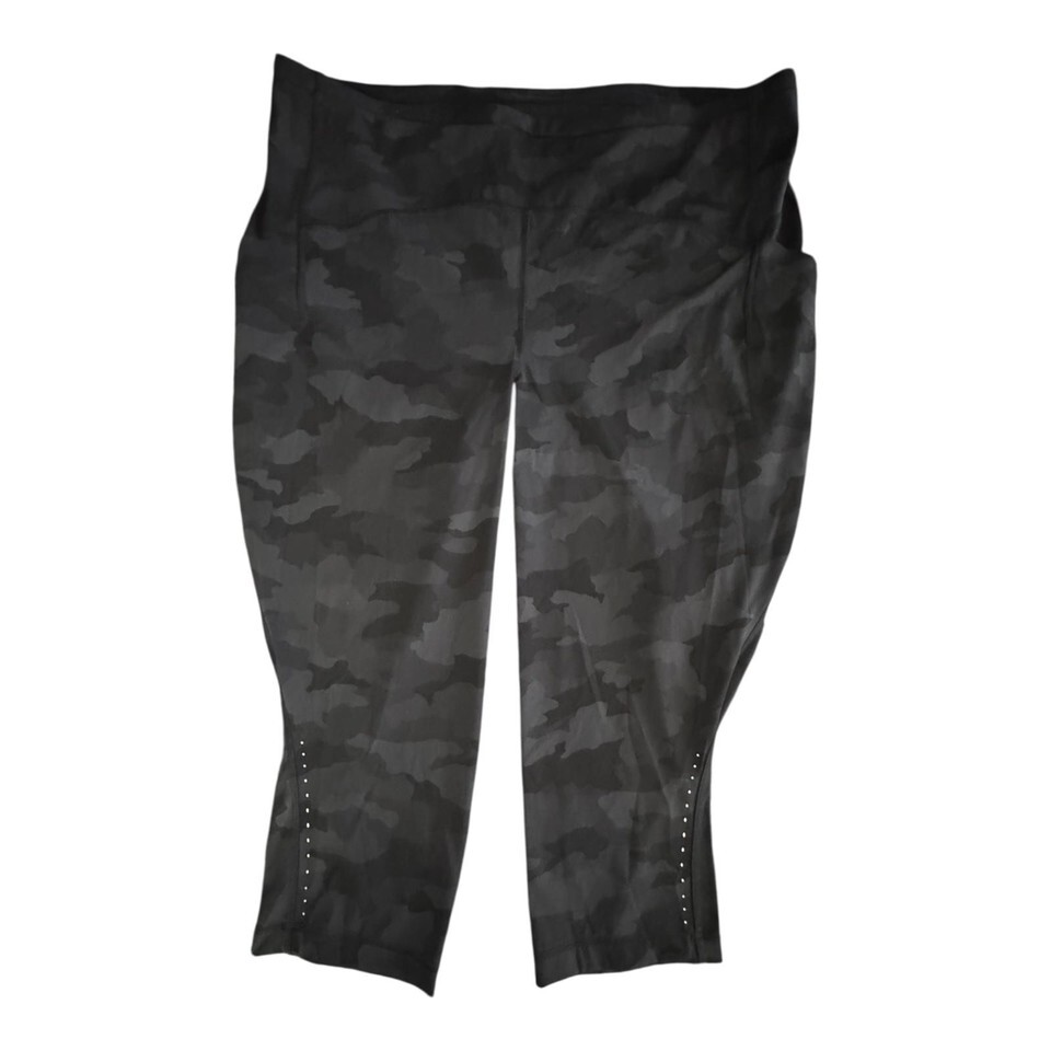 Lululemon Cropped Leggings Womens 20 Black Camouflage Stretch Yoga Gym Comfort