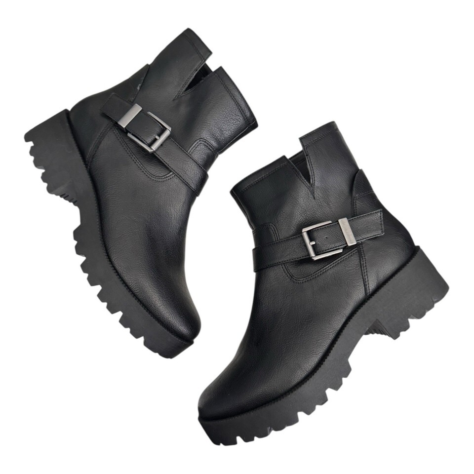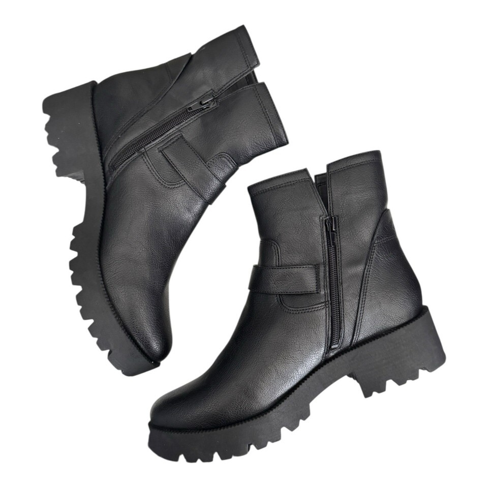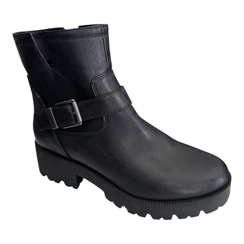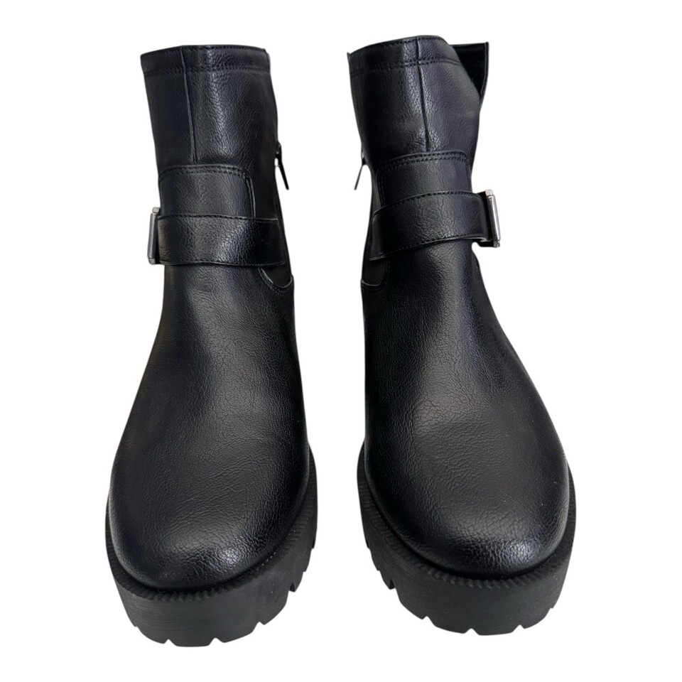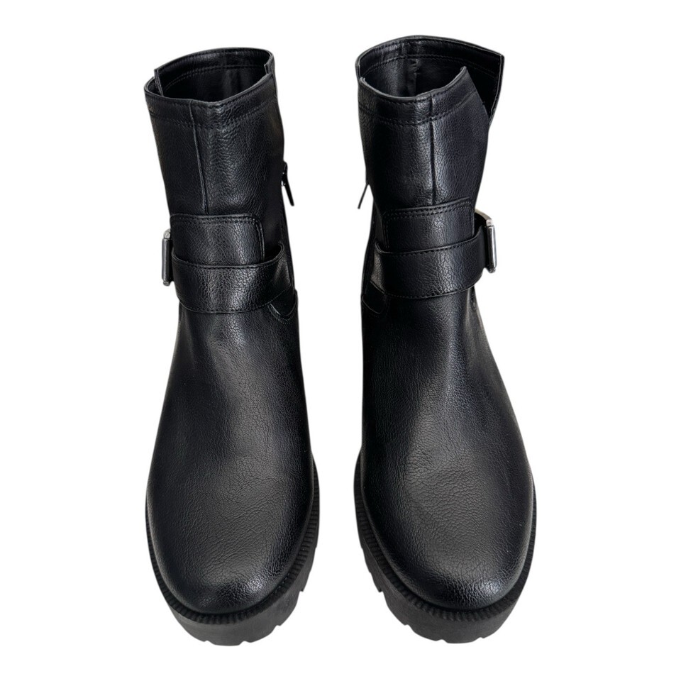 ZODIAC Miller-2 Round Toe Block Heel Black Faux Leather Boots Women’s 10 $139