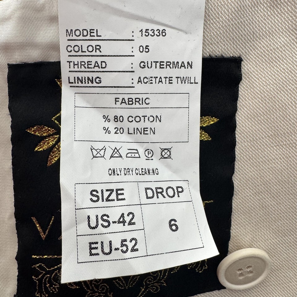 Valiant Blazer Jacket Mens US 42 / EU 52 Beige Cotton Linen Double Breasted NWT