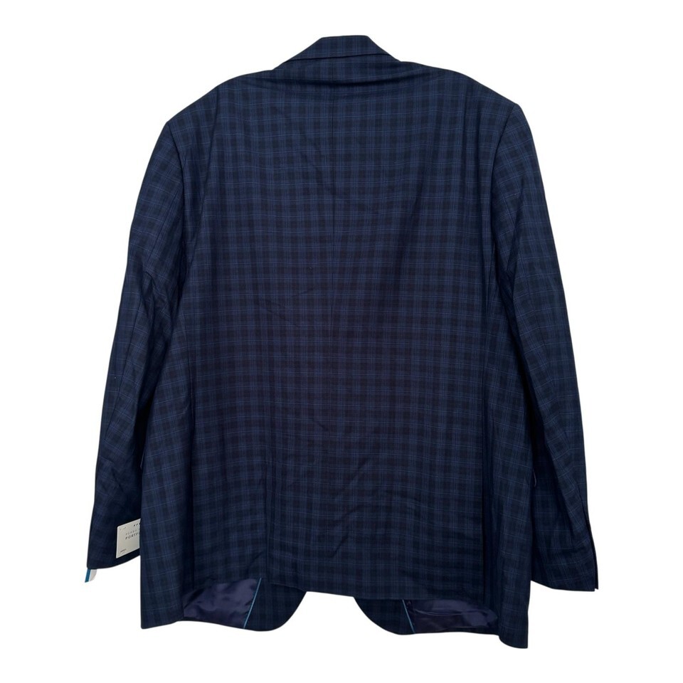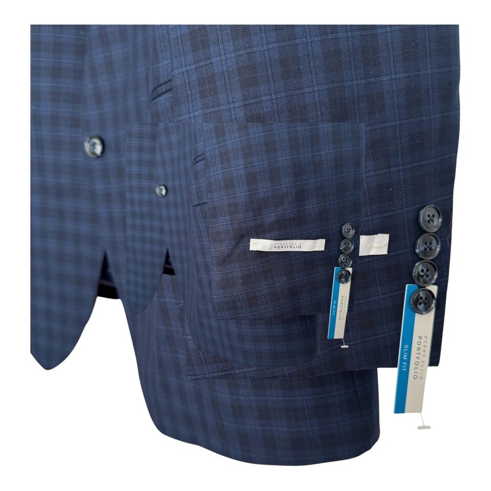 Perry Ellis Portfolio Blazer Mens 48R Blue Windowpane Check Slim Fit Sport Coat