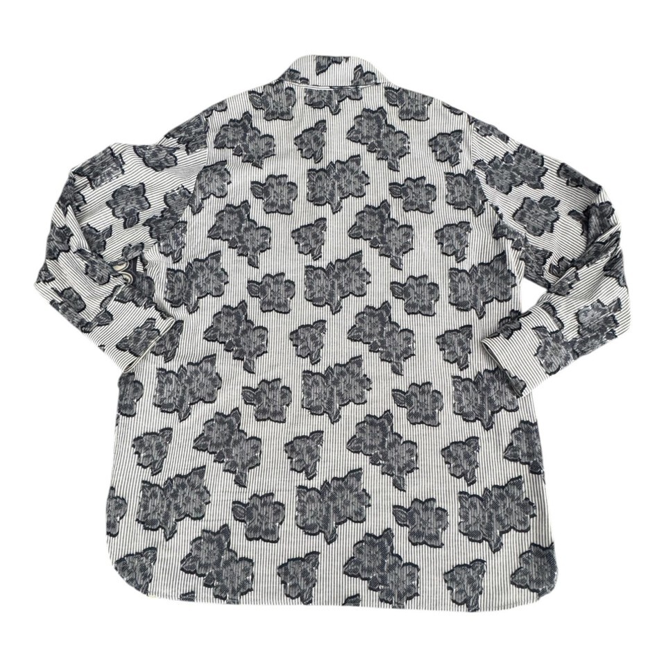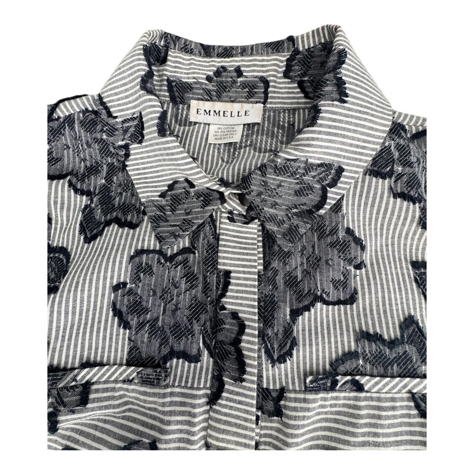 Emmelle Shirt Womens Plus XXL Navy Blue Striped Textured Button Up Top Vintage