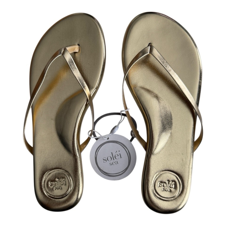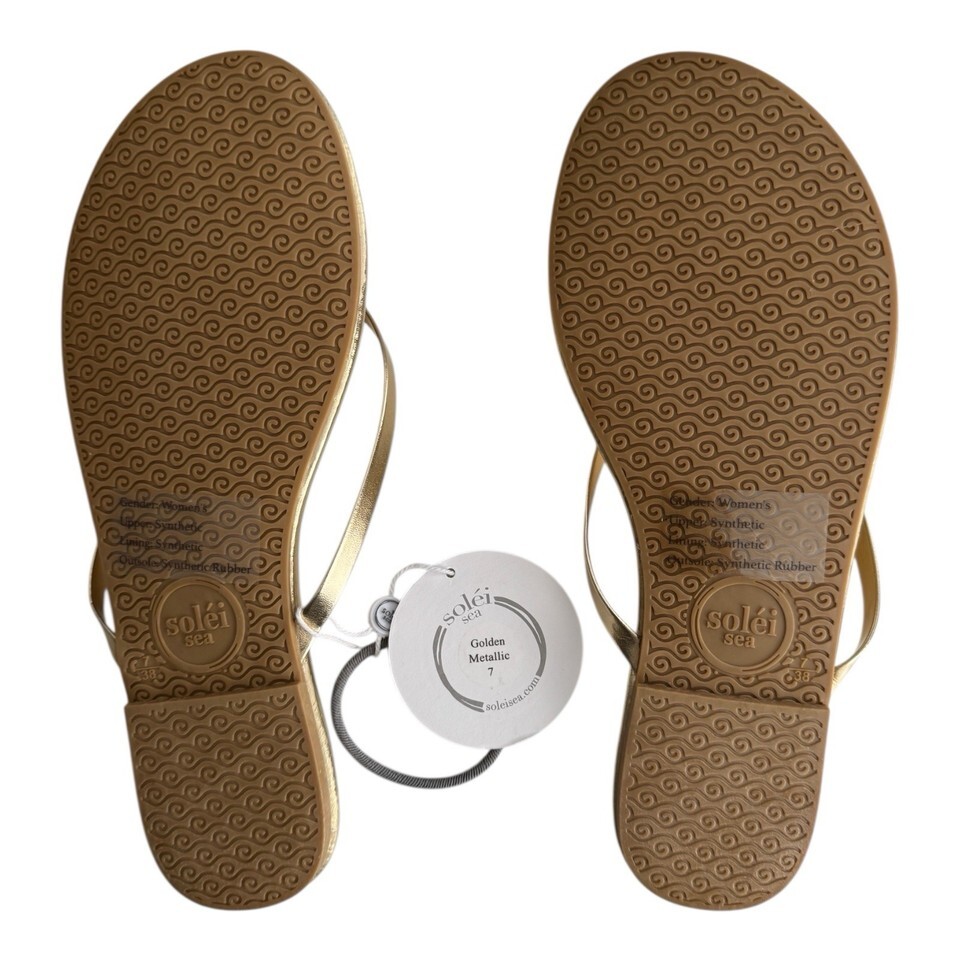 FREE PEOPLE SOLEI SEA Sz 7 (6-6.5) Around Town Golden Metallic Flip Flop Sandal