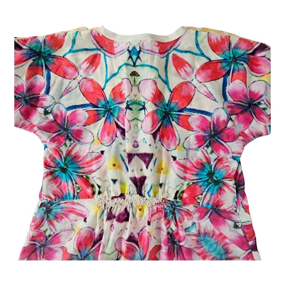 Johnny Was 100% Silk Blouse Women's Small Augustine Barra Dolman Pink Turquoise