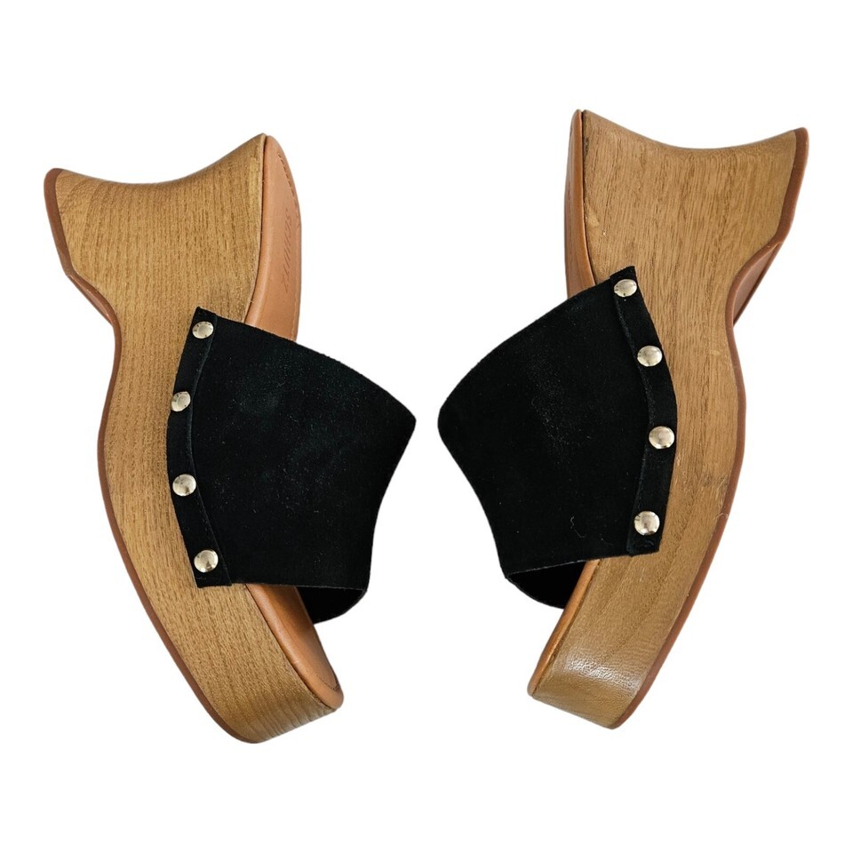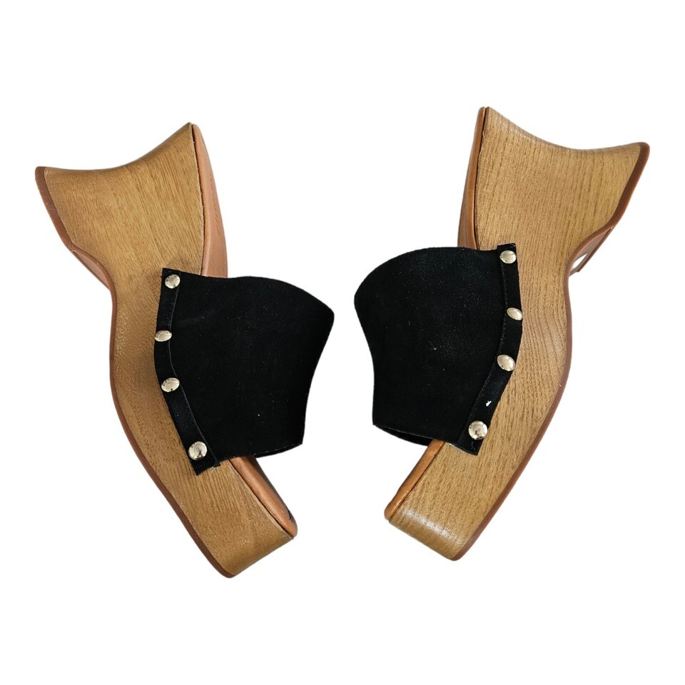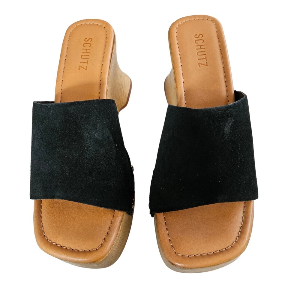 Schutz Black Suede Wedge Heel Clog Sandals Lanneh Women's Size 10 $148