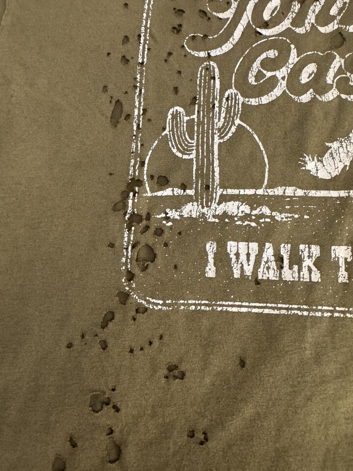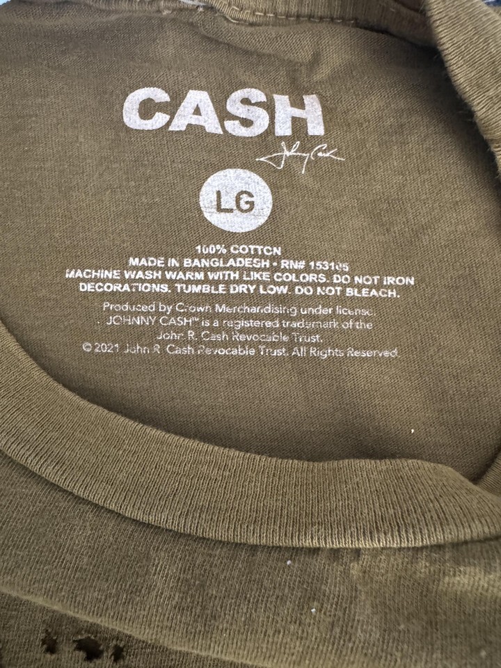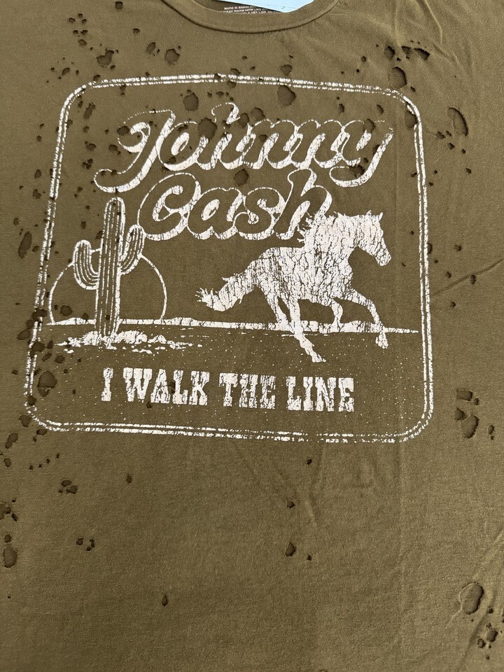 Johnny Cash Boyfriend Large Brown I Walk The Line Distressed Graphic Band Tee