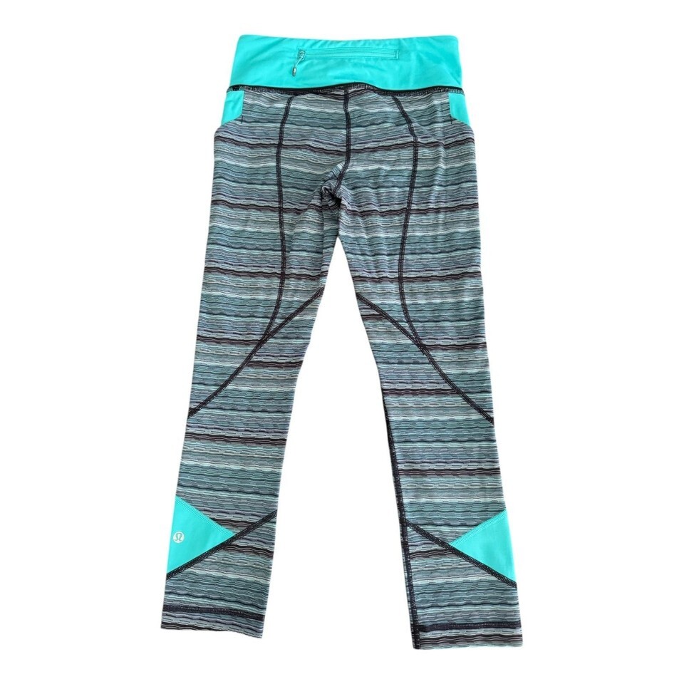 Lululemon Pants Womens 4 Blue Striped Groove Cropped Yoga Athletic Gym