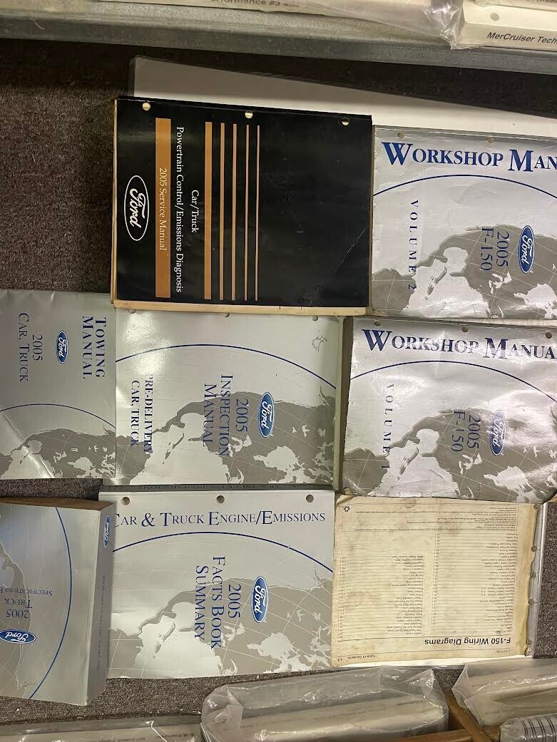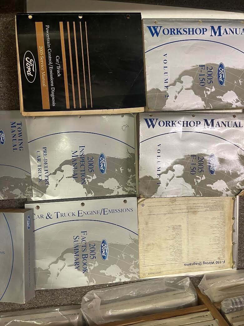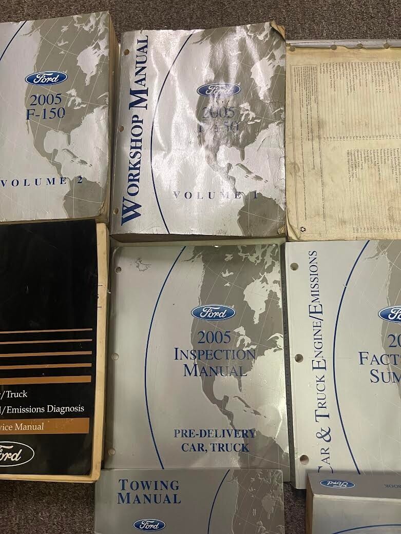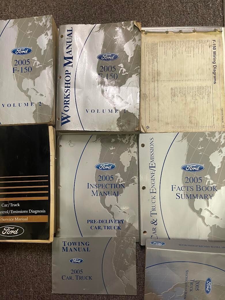 2005 Factory Ford F-150 Manuale di servizio di fabbrica 2 set di volume, manuale di riepilogo del libro dei fatti, manuale del diagramma di cablaggio, manuale di rimorchio, manuale di ispezione e diagnosi di controllo del controllo del propulsore