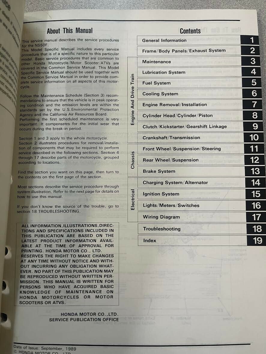 1990 Honda NS50F Manuale di servizio di fabbrica