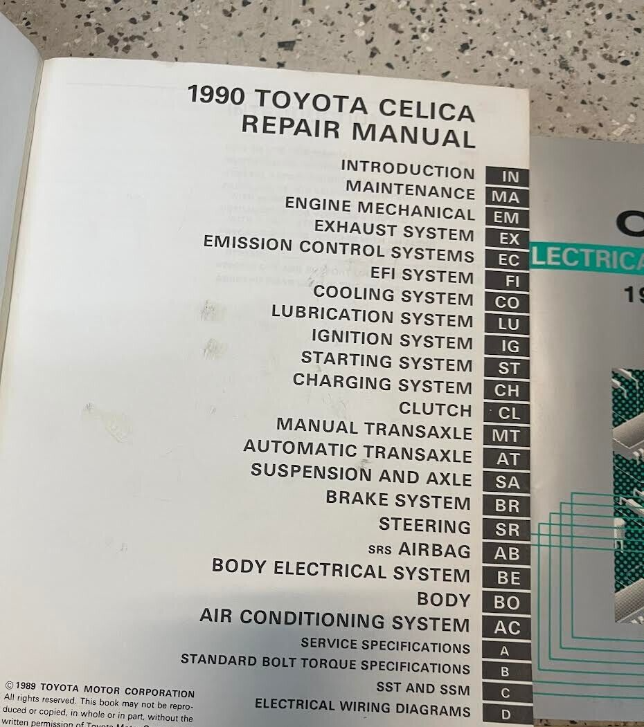 1990 Manuale di servizio di fabbrica Toyota Celica e manuale del diagramma di cablaggio