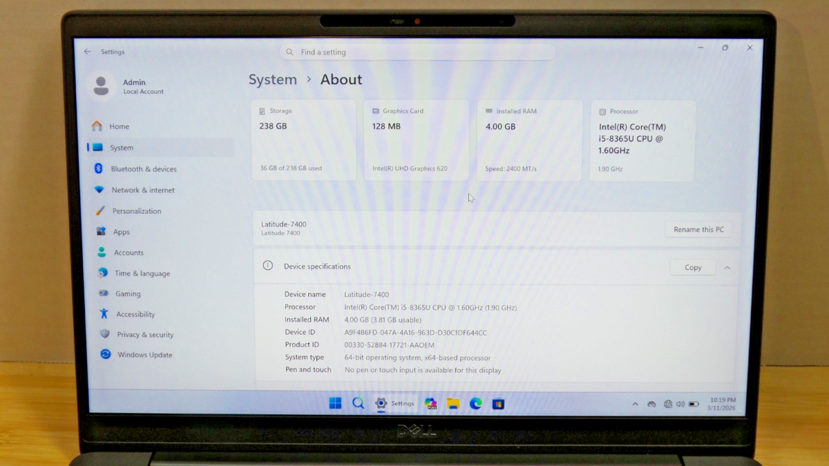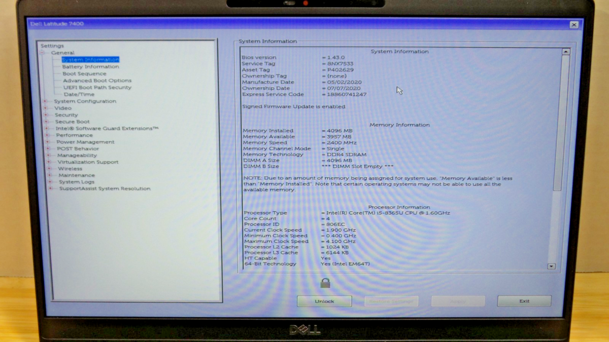 Functional Dell Latitude 7400 | i5-8365U | 4GB RAM | 256GB SSD | BIOS PASSWORD