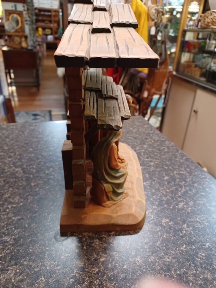 Anri Itasly Wooden Nativity Creche Manger Joseph Mary Jesus Cherub 10.5"