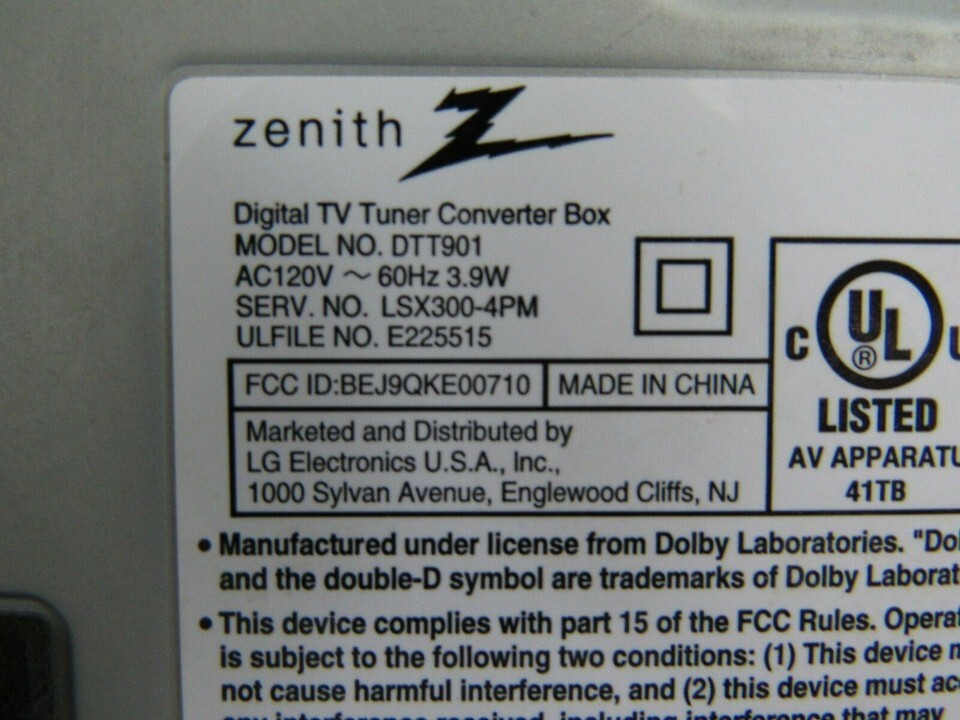 Zenith Digital DTV TV Tuner Converter Box Model DTT901 w/ Remote & Manual