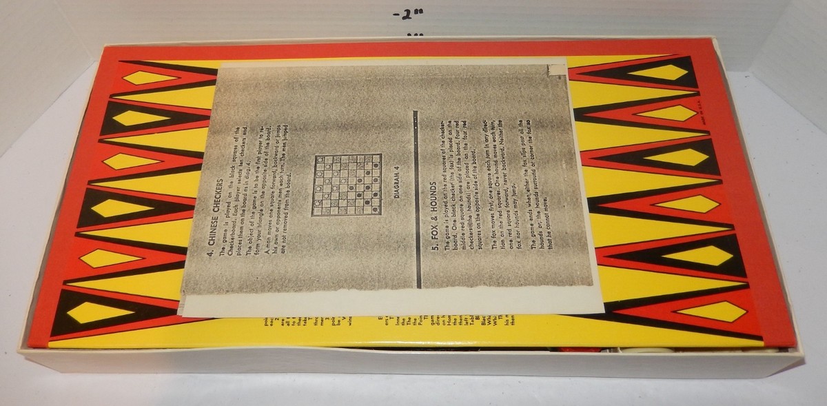 Instructions: Original instruction booklet is included and features rules for all primary games, plus Chinese Checkers and Fox Hounds.