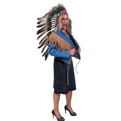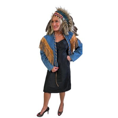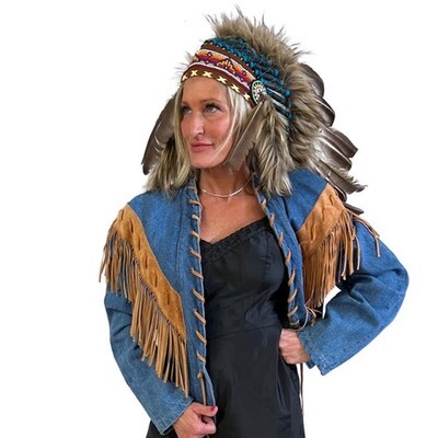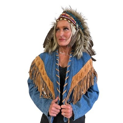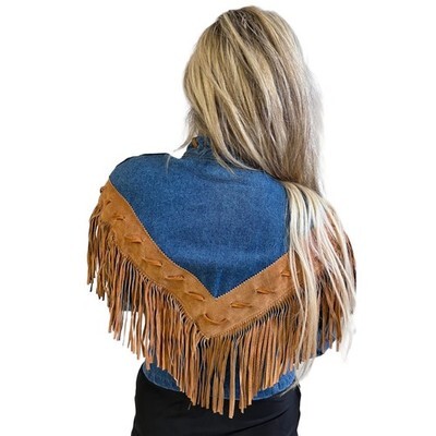 VTG 80s Western Phoenix USA Frontier Denim Jacket Leather Fringe XL Iconic