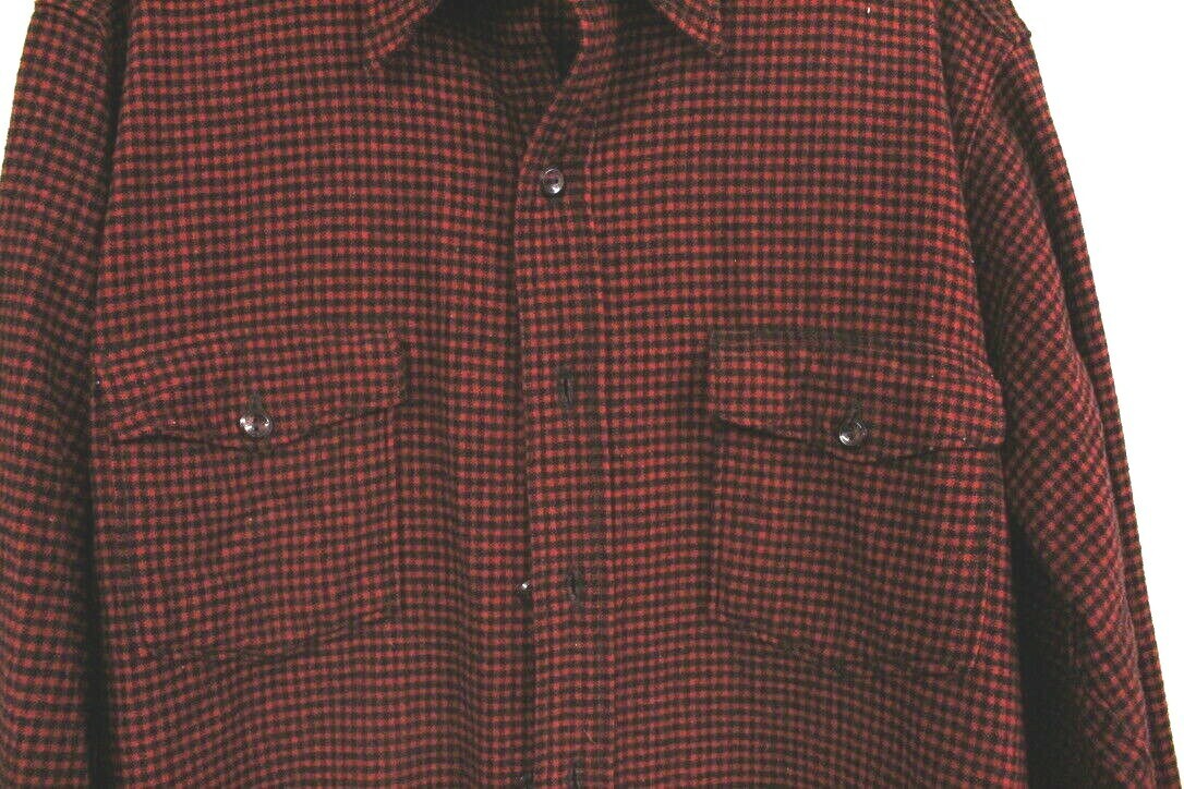 VTG 50s LL Bean Red Black Check Wool Hunting Shirt Older Script Tag XL 54 Chest