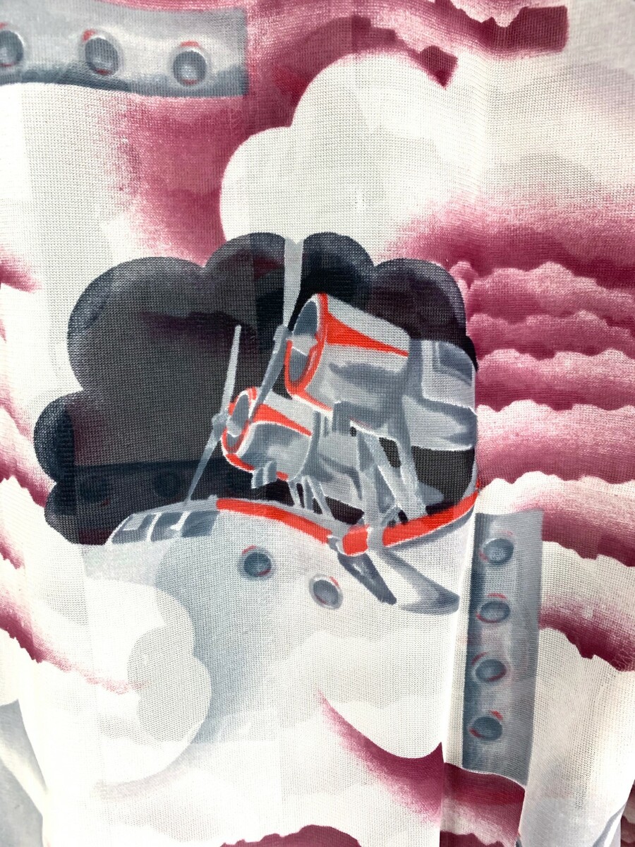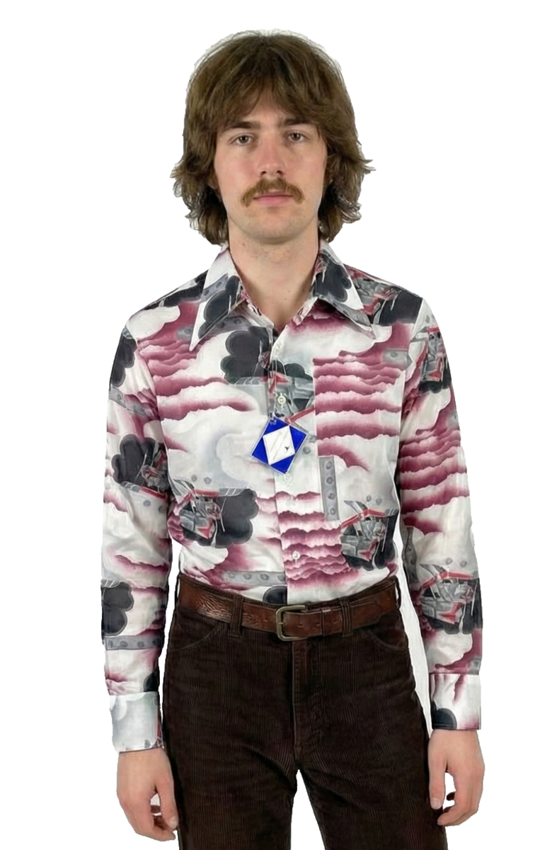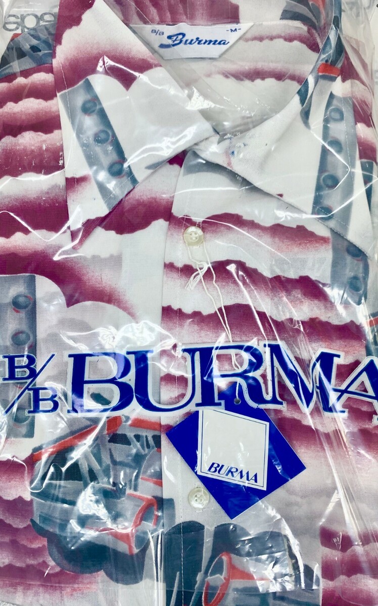 Burma VTG 1970s Disco Nylon Shirt Aviation Plane Print NOS Men’s M