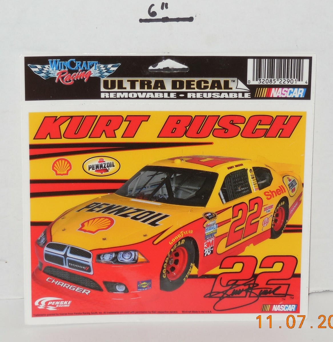 WinCraft Nascar #22 Kurt Busch Ultra Decal Removable Reuseable Penske Racing