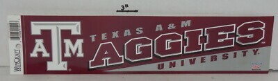 For Sale is a rare and hard to find Wincraft Texa A M Aggies Bumper Sticker College Sports Football Baseball. Its In Never Used Condition with Some Minor shelf storage wear as pictured. each additional bumper sticker after the first one purchased ships free. Please ask Any and All Questions prior to purchasing. Nice addition to any College Bowl Collection. Fast Same or Next day shipping with Free Delivery Confirmation within the U.S. Payment Due within 7 days of purchase (if you need more time please let us know In advance) we love to combine shipping is always a Yes and Most of the time Additional Items Ship for free.