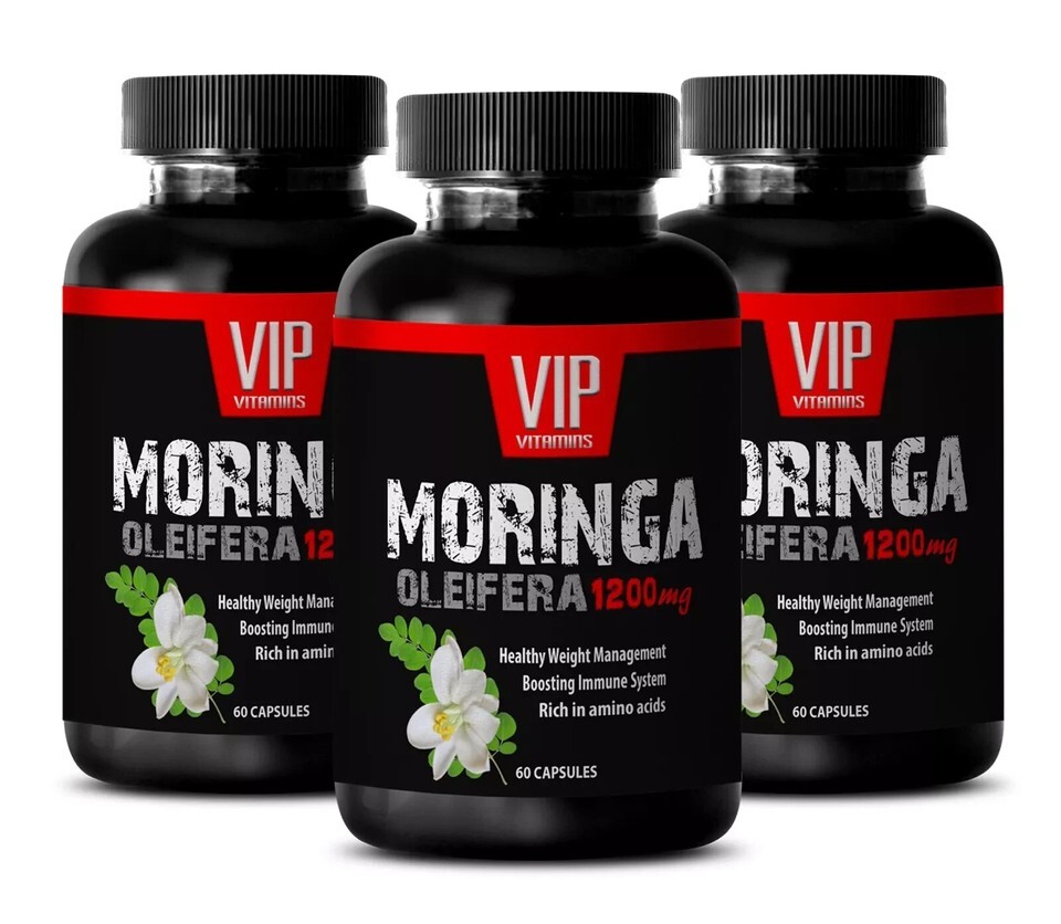 High fiber - MORINGA OLEIFERA - Organic nutrition --3 Bottles 180 Capsules