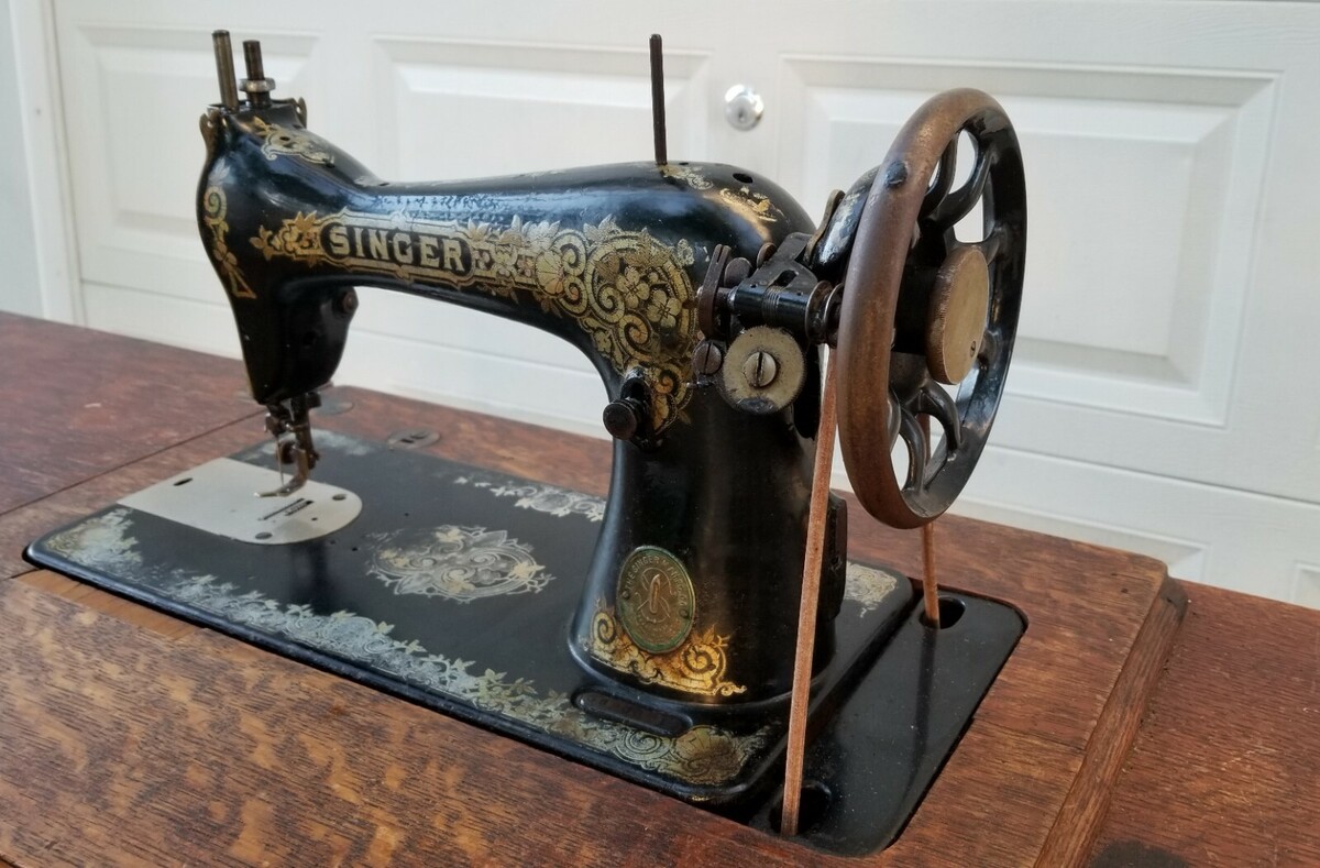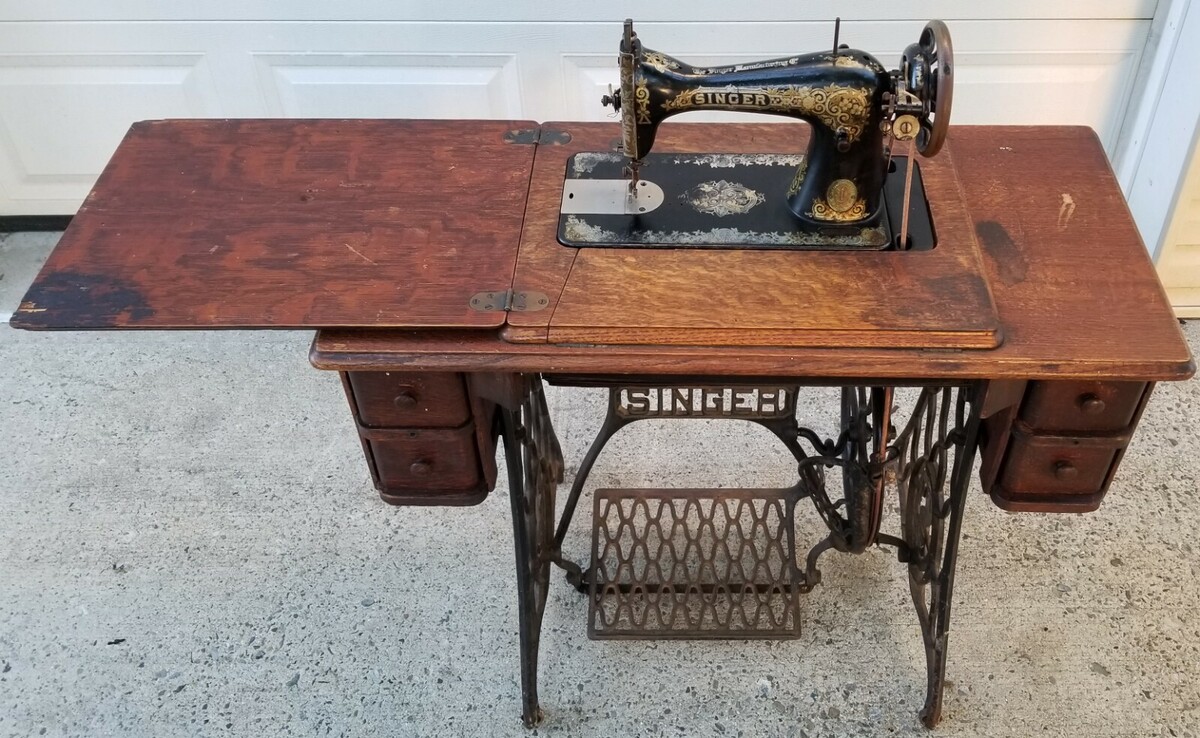 Antique Manual Pedal Singer Sewing Machine on Cast Iron Table Stand