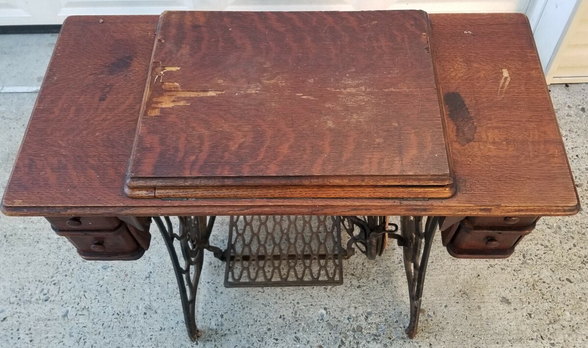 VC) Antique 1920 Model 115 Treadle Pedal Singer Sewing Machine Cast Iron Table