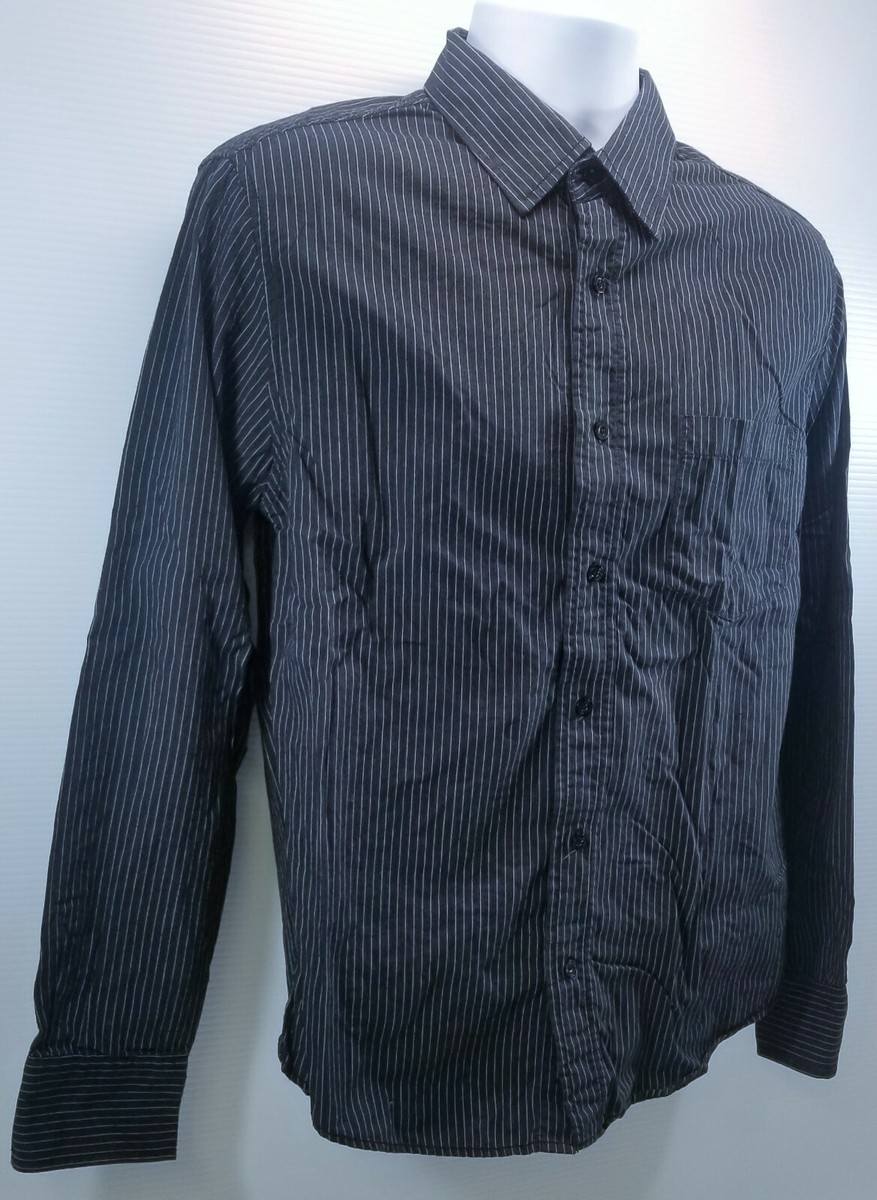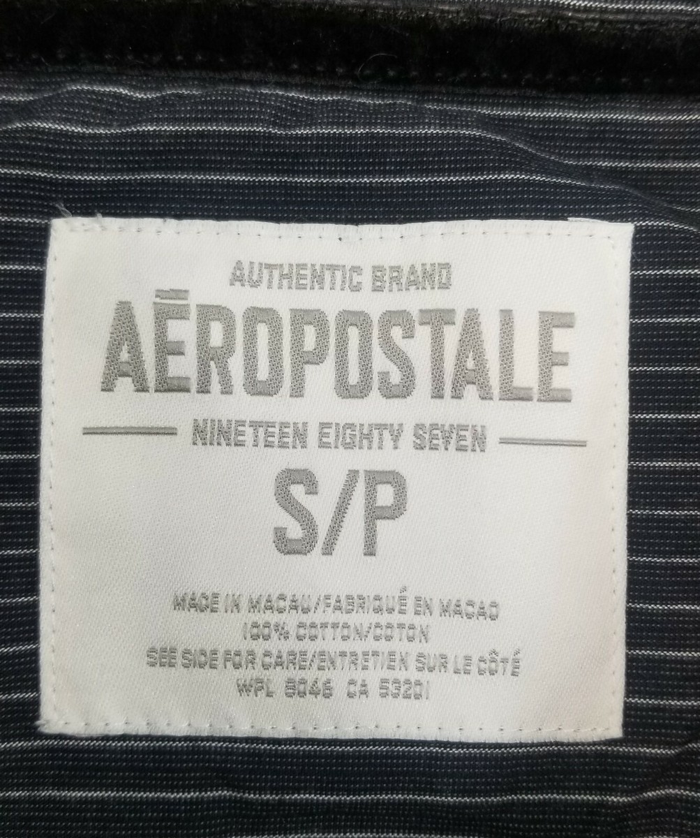 V) Aeropostale Men's Striped Dress Shirt Nineteen Eighty Seven Small Black Blue