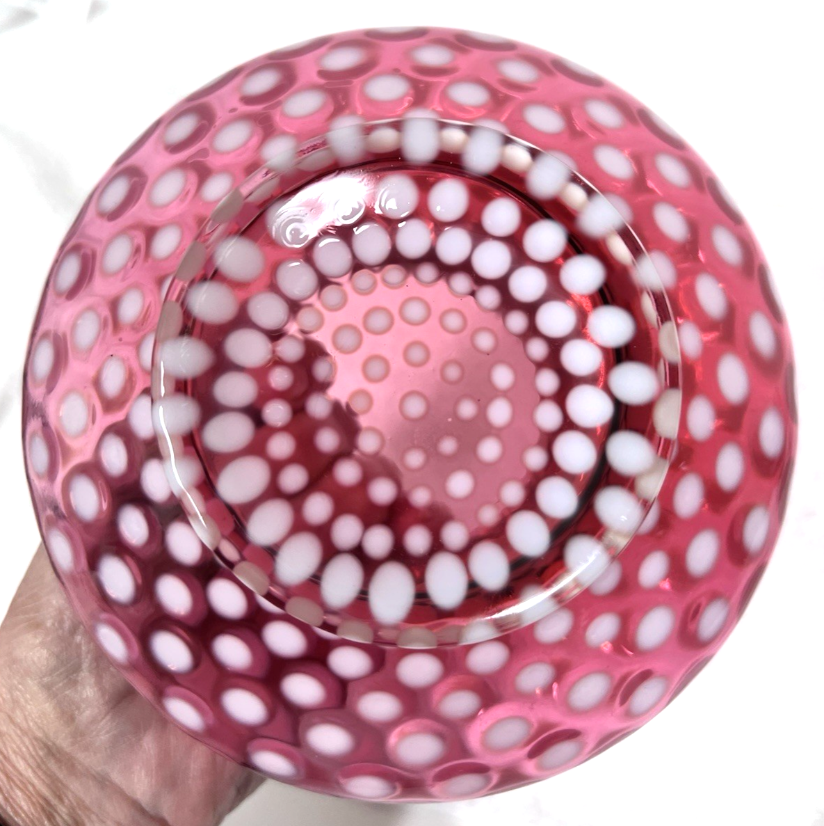 Vintage Cranberry & White Glass Coin Dot and similar items