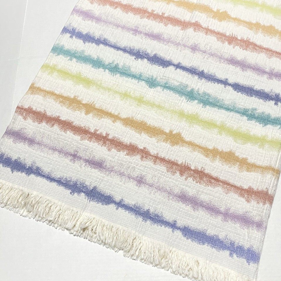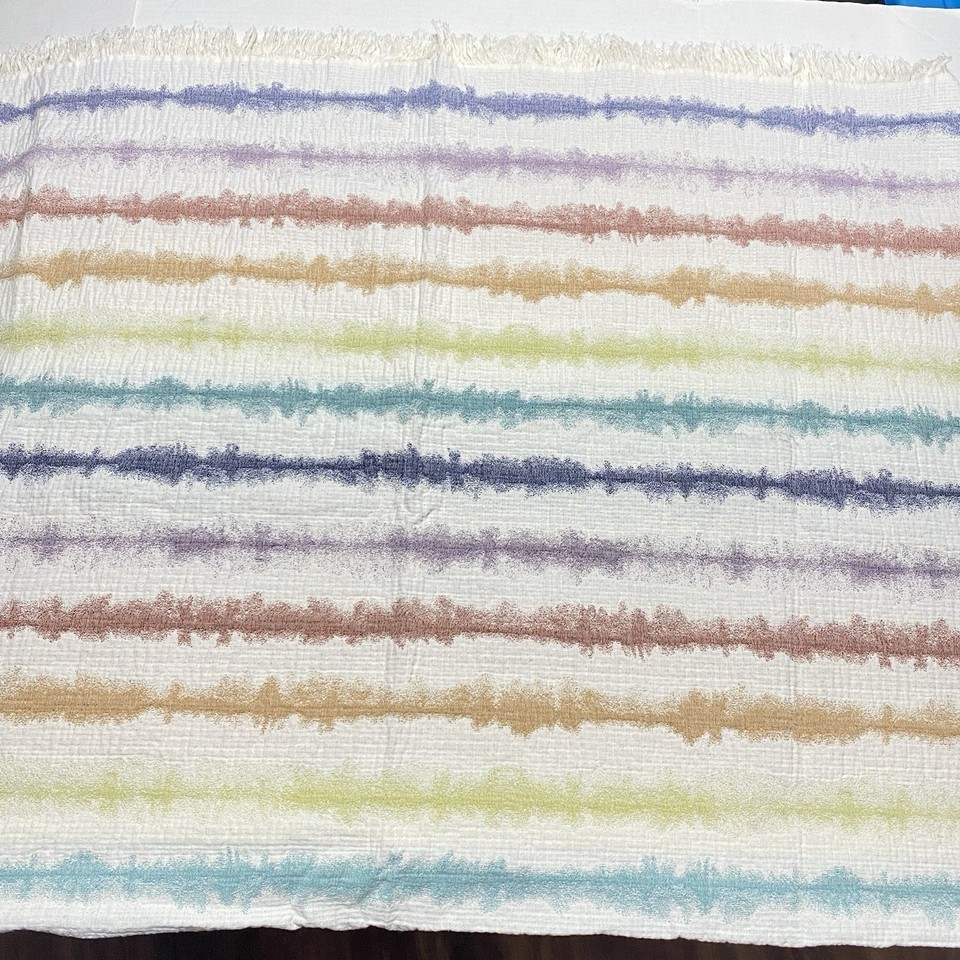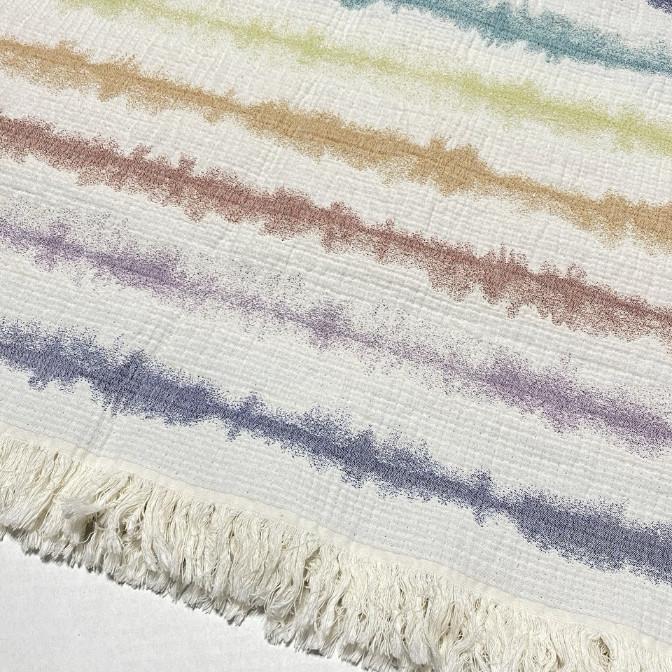 The Company Store 54x70 Ivory 100% COTTON Blanket STRIPE Texture THROW Colorful