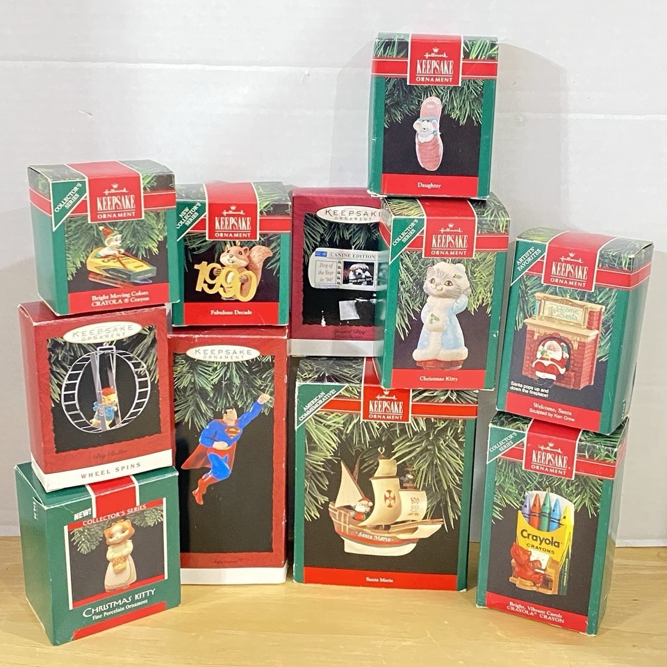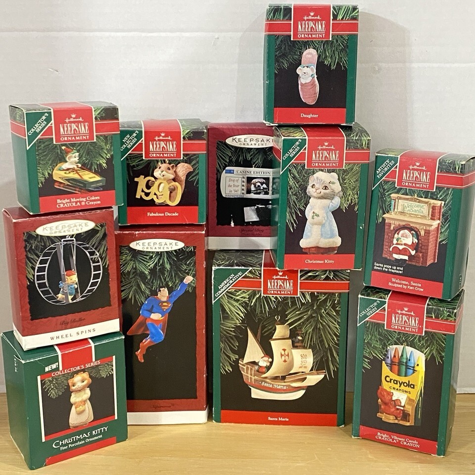 Mixed Lot of 11 Hallmark Keepsake Christmas Ornaments Superman Crayola