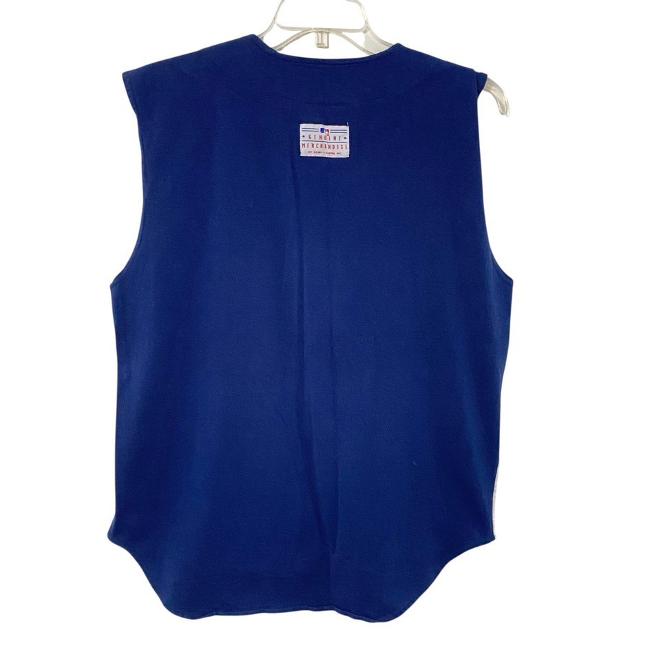 Vtg ADMIT ONE Button M Blue Gray MLB Hank-Aaron Inc JERSEY KNIT Sleeveless Shirt